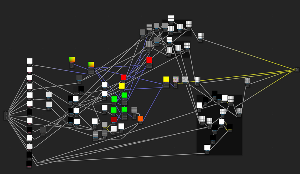 This is useful, because some bricks have a kind of inset on their face, and with this inner mask input we can add that, change its size, and even the roundness of it. We can also set the brick width of odd and even rows separately as well as the shifting. Output wise there is also some magic going on. We get the "Full Mask" not including the "Inner Mask" value, this is just the basic output of the texture. We have a separate mask for the mortar, for potencial displacement, the "Randomness Color", wich stands for the color data of the little height differences of the bricks, usable for something like changing the vector of a gradient for more advanced displacement. Lastly there is the "Inner Mask" featuring of course the mask for the inset.